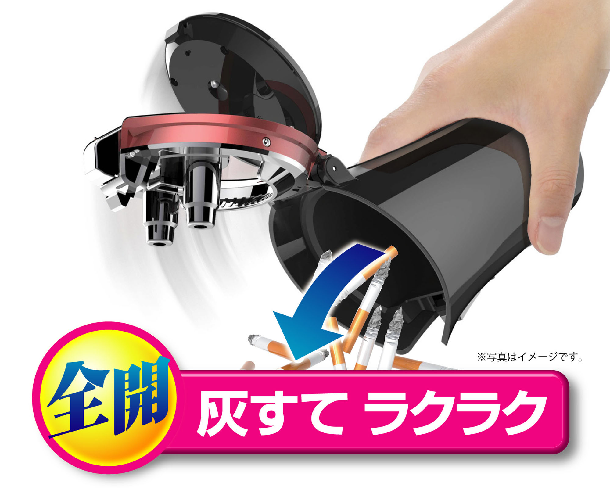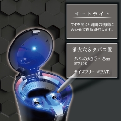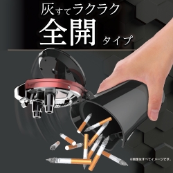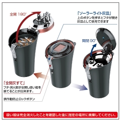 | ●「全開灰すて」機能でフタが90度、消火部が180度に開く灰皿です。 ※誤作動防止のロック機能が付いています。 ●溜まった吸い殻が引っかからず捨てることが出来ます。 ●スーパースリム~レギュラーサイズのタバコ対応の消火穴とタバコ置を備えています。 ●ソーラー+オートライト(青LED)で周囲の明暗に合わせて自動点灯します。 |