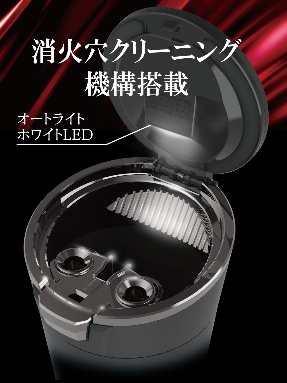 | ・車内での使いやすさにこだわったソーラーライト付き多機能灰皿です。 ・「灰づまり自動クリーニング消火穴」をはじめ、車載用灰皿に特化した12の機能を備えています。 ※詳しくはパッケージ側面をご参照ください。 ・ドリンクホルダーに収まりの良いテーパードデザインです。 Amazonでご購入はこちら |