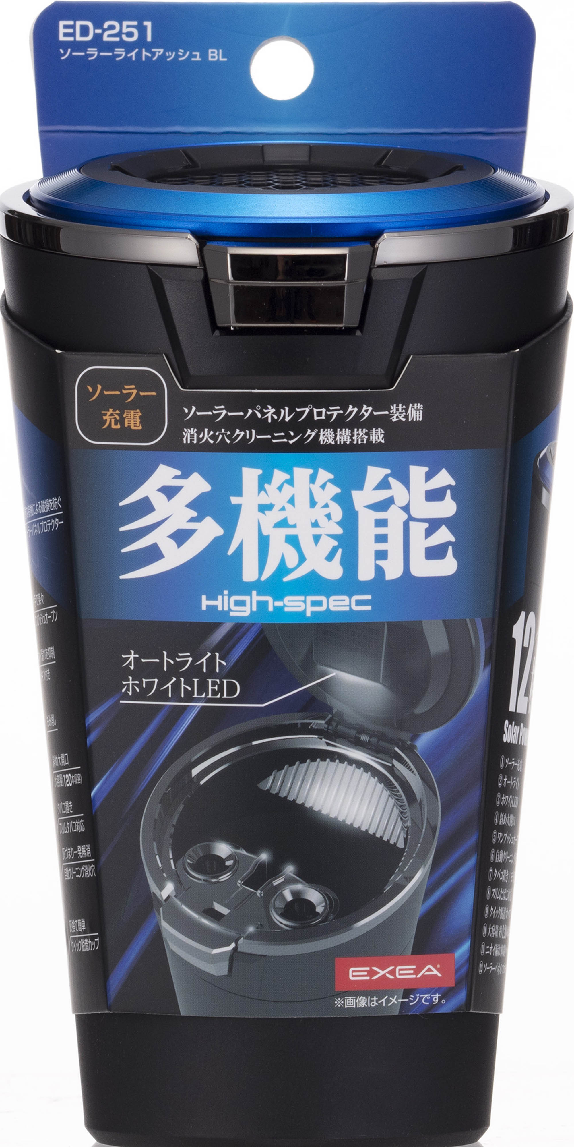| ・車内での使いやすさにこだわったソーラーライト付き多機能灰皿です。 ・「灰づまり自動クリーニング消火穴」をはじめ、車載用灰皿に特化した12の機能を備えています。 ※詳しくはパッケージ側面をご参照ください。 ・ドリンクホルダーに収まりの良いテーパードデザインです。 Amazonでご購入はこちら |