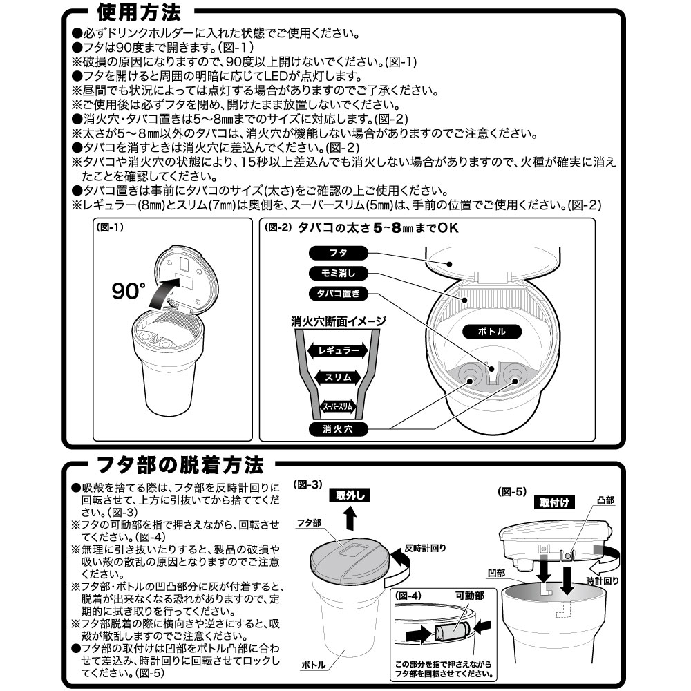 スーパースリムの太さまで(5~8mm)対応の消火穴とタバコ置き